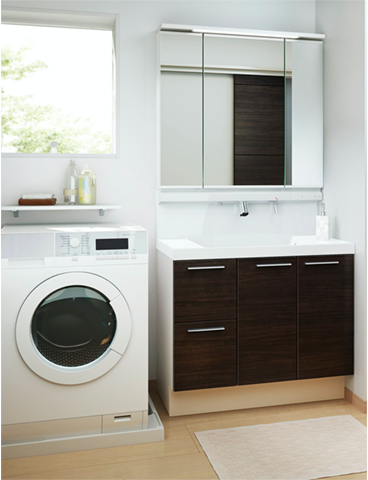 | 洗面化粧台 | 900mm幅三面鏡 シングルレバーシャワー水栓 |